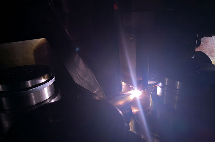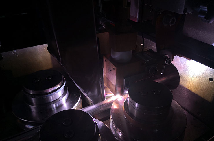 為了提高生產(chǎn)線效率,又可以獲得良好的焊縫質(zhì)量,我們公司研發(fā)的電弧焊接的穩(wěn)弧器,針對(duì)上述的問題,在電弧中間外加可以調(diào)節(jié)大小的縱向電磁場所,通過電磁力把電弧穩(wěn)定在中間或向前推,有了電磁穩(wěn)定,電弧就不會(huì)向后或左右擺動(dòng),咬邊和“駝峰”的問題就不會(huì)出現(xiàn)。所以提高了生產(chǎn)效率又保證了質(zhì)量,如圖2所示。提高速度20-30%在實(shí)際生產(chǎn)中使用得到了驗(yàn)證。為了適應(yīng)不同的焊接電流和生產(chǎn)速度,可以調(diào)節(jié)電磁力的大小,適應(yīng)不同的焊接電流和速度。