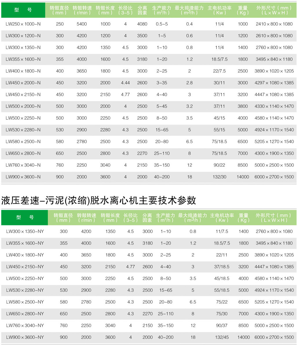 機(jī)械差速-污泥(濃縮)脫水離心機(jī)主要技術(shù)參數(shù)