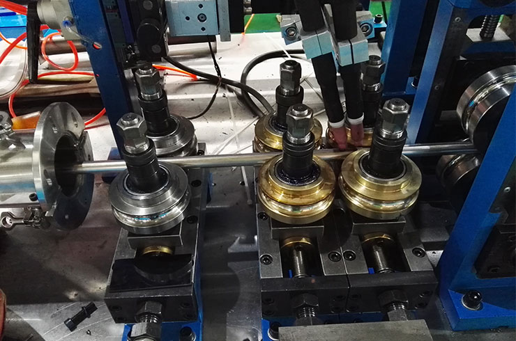 經(jīng)開卷、清洗裝置、進(jìn)料導(dǎo)向、成型、焊接、內(nèi)焊整平、外焊縫打磨、整形定徑、固熔處理、終定徑、校直、探傷、噴碼、定尺、切斷(盤卷)、接料等連續(xù)成型工藝、結(jié)構(gòu)精細(xì)、操作簡(jiǎn)便